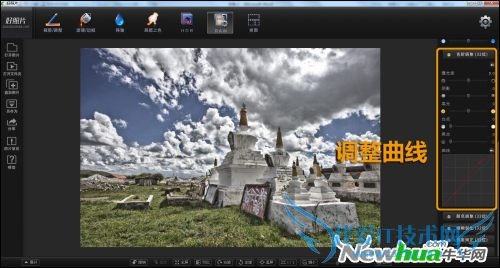 第二步,略微调整曲线,使曝光度正常,注意保留云彩的层次。