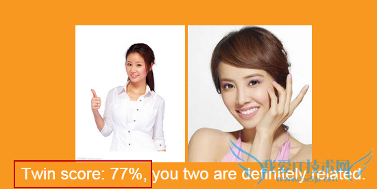 和how-old一样,用户只要登录www.twinsornot.net上传两张照片即可,随后微软会根据大数据计算出两张照片的相似度。