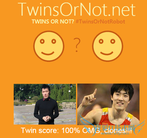 继上次的测颜龄网站how-old之后微软最近又推出了一个新花样“twinsornot”,这次推出的twinsornot网站是用于测试照片相似度的网站,这个网站会对比你上传的两张人物照片的相似度来判断他们是否是双胞胎。虽然听上去挺没意思的,不过你可以将你朋友的照片上传上去看看他们的相似度,说不定他们是失散多年的兄弟(姐妹)呢!