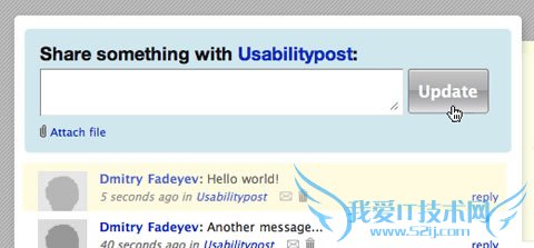 在 Yammer 上,当你的新消息被提交之后,“更新”按钮将被禁止。