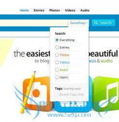 当你点击 Kontain 搜索框的搜索链接时,会出现一个类似于下拉菜单的层。所以,如果您需要来缩小搜索范围,您可以选择菜单中你所需要的类型。这些选项的聚合简化了搜索框。