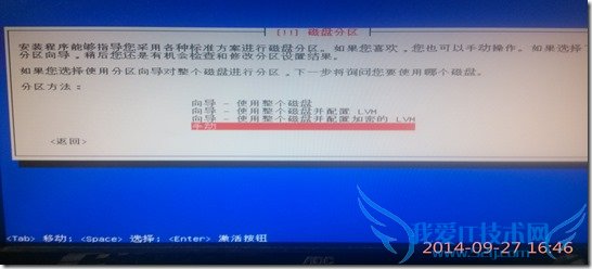 终于来到了有技术含量的地方了。Linux的磁盘分区。如果你是新手的话,建议你选择默认就可以了,这个是适合大多数人的。对于什么是LVM的问题可以直接进百度百科 ,上面写的比较通俗易懂。如果你是控制欲比较强的并且喜欢折腾的人的话,建议选择手动分区,这样你可以控制到每一个Kb的磁盘空间。如果你是全新安装的话,你可以直接进入到磁盘分割的界面,如果你之前已经分过磁盘了,但是不满意之前分过的,直接删除就Ok了,再选择磁盘进行重新分区。