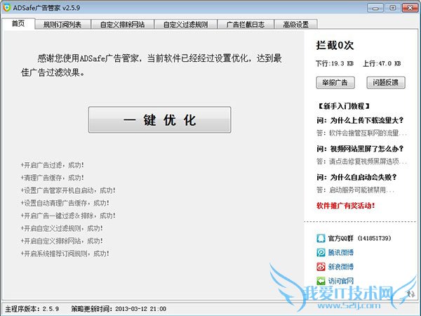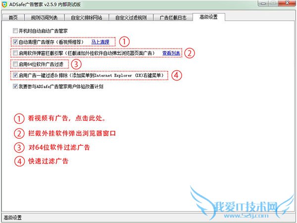 欢迎您访问我爱IT技术网,今天小编为你分享的电脑教程是日常使用电脑方面的电脑常识:ADSafe广告管家使用说明,学会并运用这些电脑常识,让你快速玩转电脑及互联网方面的知识,下面是详细的分享!