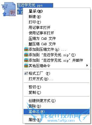 步骤三右击要更改格式的文件选择“文件重命名”然后把扩展名PPS改成PPT这样接下来就可以像普通的PPT文件打开及编辑了如图所示