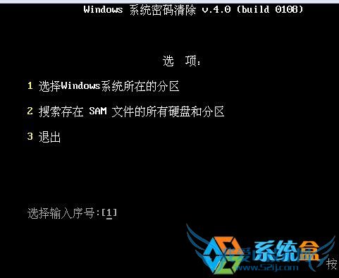 3、然后我们选择系统所在分区“1”,当然你不知道的情况下亦可使用搜索并且回车;