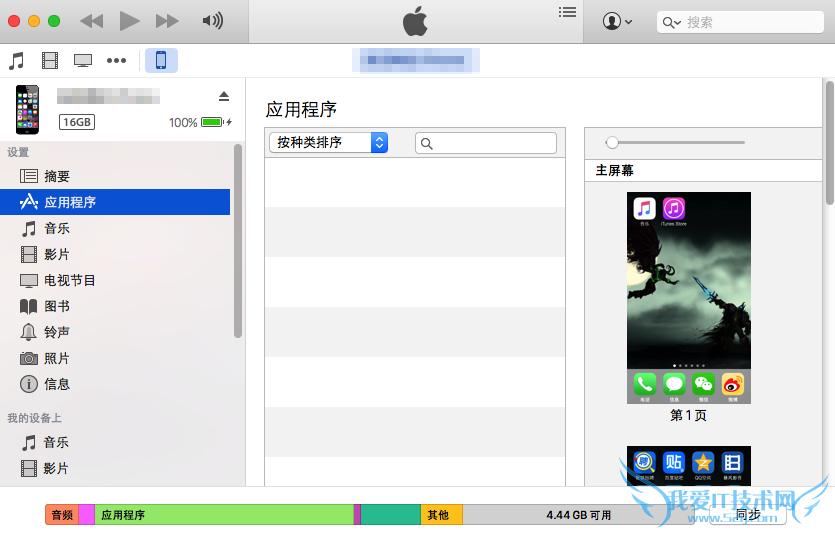 2、在 iTunes 中,选择您的 iOS 设备,然后点按“应用程序”。