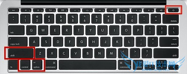 3.同时松开 Shift, Control, Option 这三个键,保持按住电源键不动直到开机