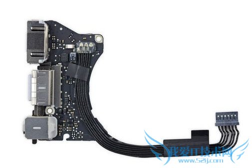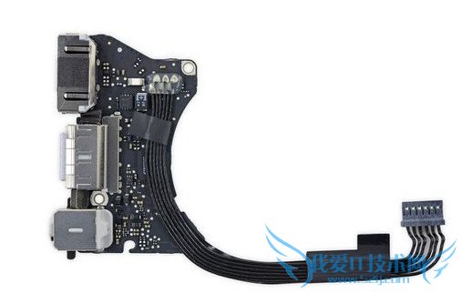 I/O 面板和接口,包括了耳机孔,USB 接口,MagSafe 2 接口。包括这个 Cirrus Logic 4208-CRZ 音频控制器也和今年 13 英寸的型号一样。