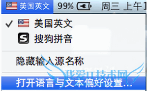 二.如果想更改此快捷键设置,可以点击菜单上的输入法图标,打开语言与文本偏好设置