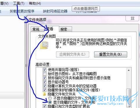 6、在打开的文件夹选项中切换到“查看”选项卡,显示隐藏的文件和文件夹,显示系统文件,扩展名;