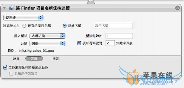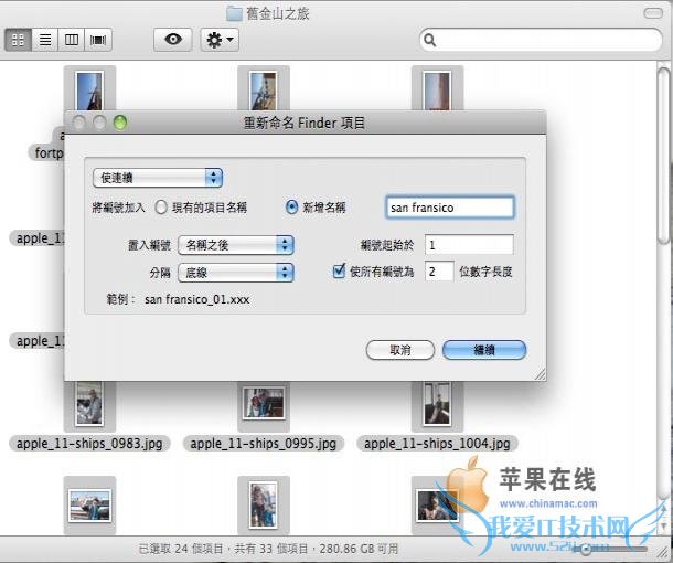6.更改名称的方式有很多,选项如下图所示,可以选择一种您比较喜欢的方式当作日后的预设值。这边示范的为「使连续」