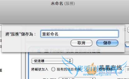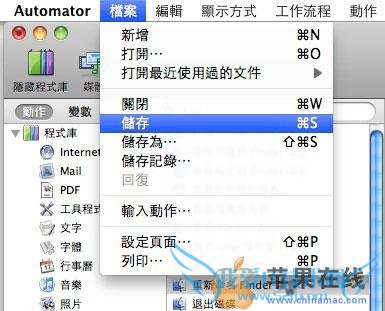 7. 最后就是将您设定好的服务储存,并且命名好一个方便好用的名称。就可以先关闭Automator了。