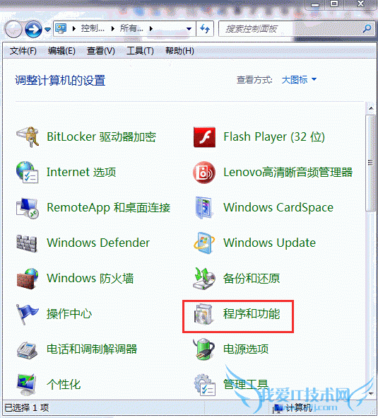点击“控制面板”进入到下一个窗口找到“程序和功能”