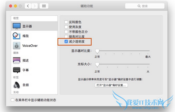 OS X Yosemite 中大量采用透明菜单、窗口和标题栏,这需要耗费处理器性能和内存渲染。访问系统偏好设置,进入“辅助功能”,然后勾选“减少透明度”即可。