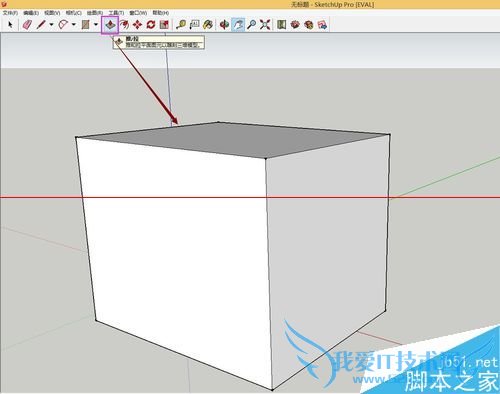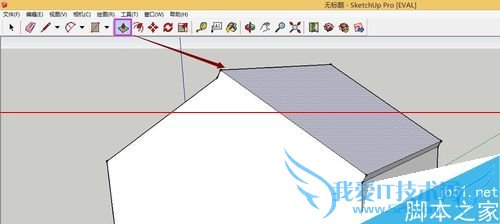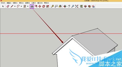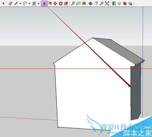 5、小房子是有屋檐的,所以需要使用‘推拉’工具将屋顶推拉出屋檐。