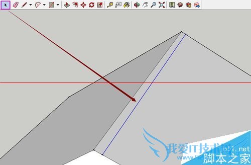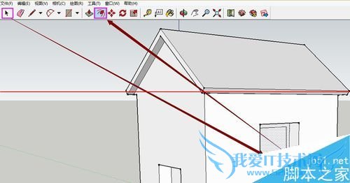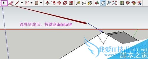 7、绘制完成后,通过‘选择’工具选择没用的短线后delete键删除,绘制出屋顶的角。