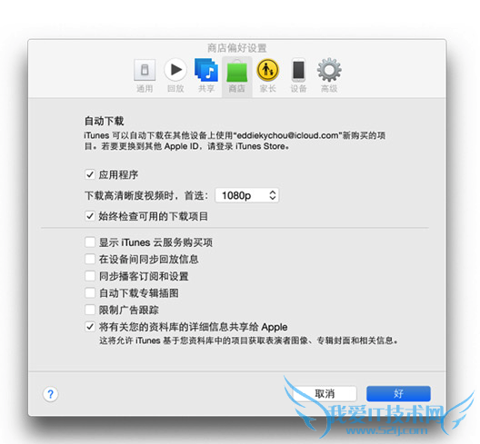 要启用应用程序和图书的自动下载功能,请打开 iTunes 并选择 "偏好设置"。然后点击 "商店" 并选择 "应用程序" 和 "图书"。