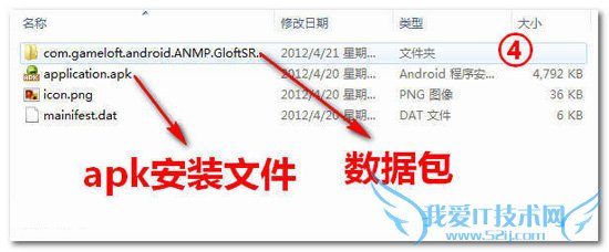 如果不想修改修改后缀名的话,那么在选择打开方式上选择WINRAR来将gpk文件解压打开,解压之后文件夹上面能找到【application.apk】,这个文件就是游戏安装文件了。现在我们在找到这个文件上面的【com.gameloft..】,将这两个文件及拖动到用户自己的电脑上,然后双击【application.apk】文件,运行它,安装到指定位置,这样即可完成安装了。如图所示: