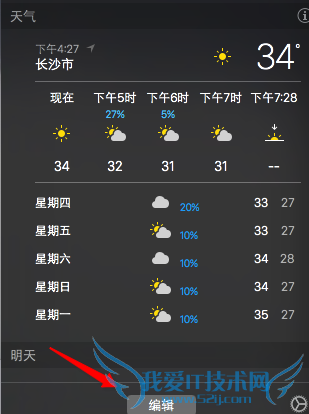 2、通知中心默认为我们添加了部分显示的项目,我们可以自己手动添加或删减这些项目的显示,在通知中心的底部有“编辑”按钮。
