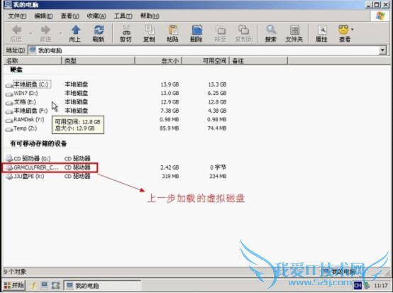 3.打开“我的电脑”,找到准备的原版WIN7系统,鼠标右击系统文件,选择“加载ImDisk虚拟磁盘”