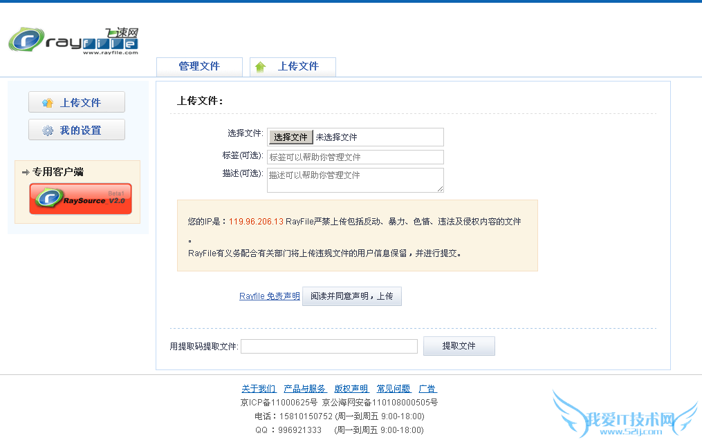 RayFile是一款提供在线存储和网络寄存的服务提供商。我们能够提供价格低廉和快速的线上存储/远程备份能力, 并提供广告支持服务, 同时我们还提供配套的高速便捷的上传和下载工具。