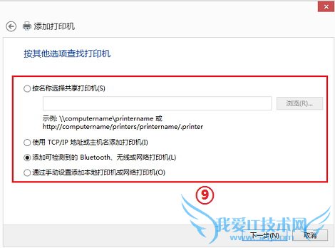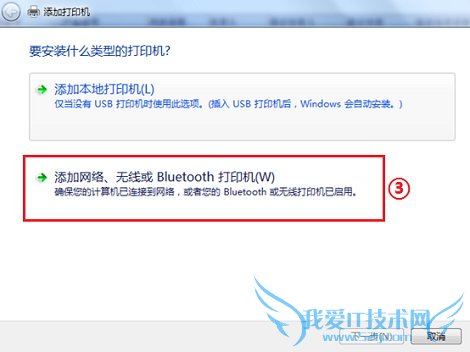 3、在“添加打印机向导”中,单击“添加网络、无线或 Bluetooth 打印机”