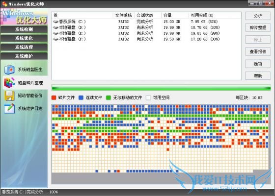 同时,Windows优化大师还会弹出一个磁盘碎片分析报告。