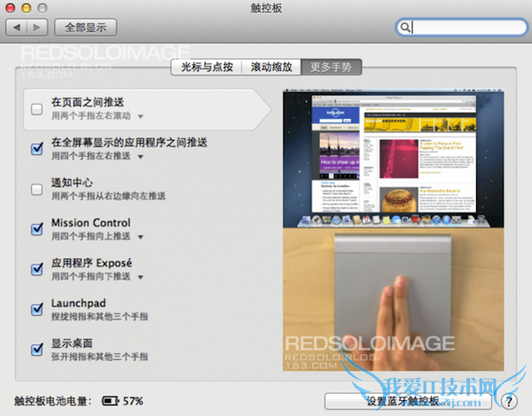 在屏幕之间推送 这个不要选。这个切换其实就是 前进和后退。os x 对这个切换处理的很不理想,有的地方要用两个手指滑动,有的地方要用三个手指滑动,所以直接取消,交个btt来设置。BTT可以设置系统级别的 前进和后退,大部分软件和finder都适用。区别是,safari失去了翻页效果,也无所谓了。如果不常用到通知功能,通知中心也不要选。双指边缘滑动也用容易给后面的操作带来误操作。系统偏好设置到此为止。