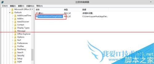 7、在右窗格中,双击“OutlookSecureTempFolder”。