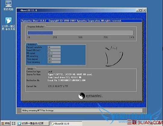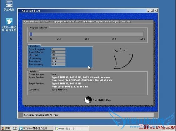 3.单击“是”,电脑重新启动,进入WINPE界面,自动进行系统备份,备份结束后自动返回系统界面。如图