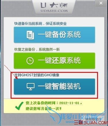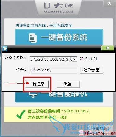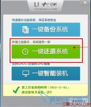 欢迎您访问我爱IT技术网,今天小编为你分享的电脑教程是日常使用电脑方面的电脑常识:U大师一键备份还原系统操作步骤,学会并运用这些电脑常识,让你快速玩转电脑及互联网方面的知识,下面是详细的分享!