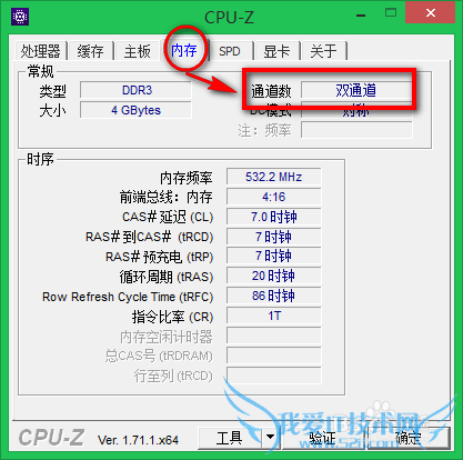 4、在界面途中我们看到有个通道数 ,其后面若显示的是双通道 ,则就是内存双通道了。
