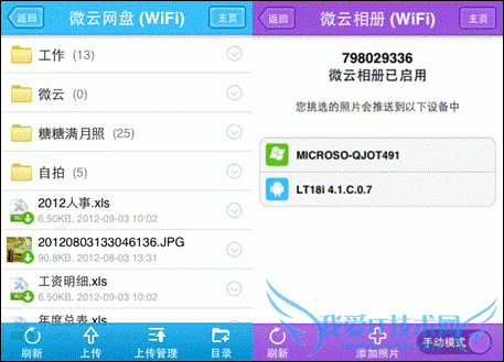 微云主界面和微云传输界面