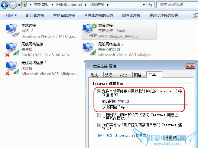 如果是拨号上网,就在“宽带连接”上设置共享。