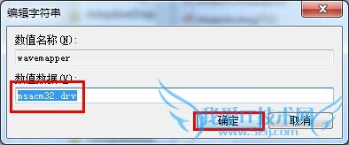 3. 查看右边的窗口有没有“wavemapper”值,如果没有新建一个“wavemapper”字串值,双击这个新建的值,把它的数值数据改为“msacm32.drv”然后关闭注册表编辑器重启计算机完成操作。如下图所示