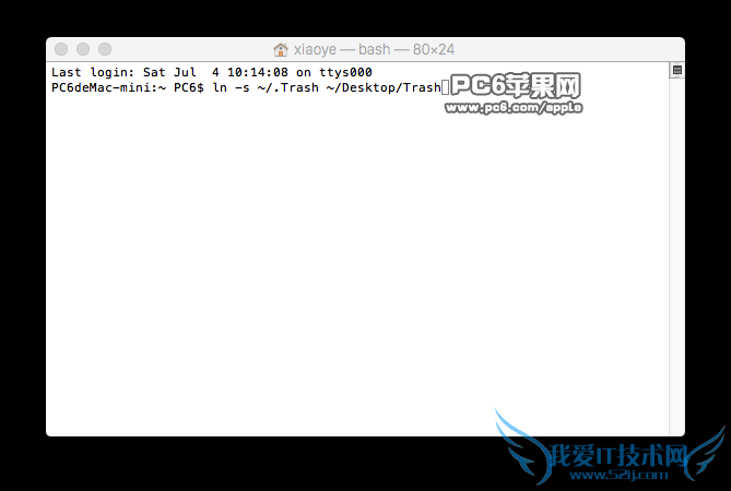 2、输入完后,你的桌面就会出现"Trash"文件夹,并且它也是指向你dock上的废纸篓的。
