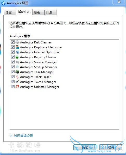 在Auslogics的托盘图标上单击右键,选择程序设置可以进行Auslogics各项功能的设定