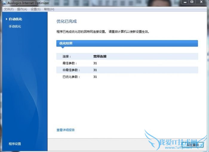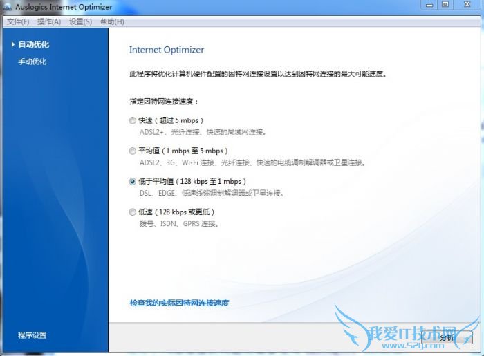 Auslogics Internet optimzer提供两种方式进行对于网络连接的优化,一种是手动模式,一种是自动模式,对于不是很懂电脑的用户本人比较推荐自动模式