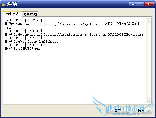 在使用过程中,您可以单击“选项”按钮进入选项界面。在该页面中,您可以查看和管理历史删除日志(记录文件粉碎机历史操作的文档)