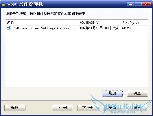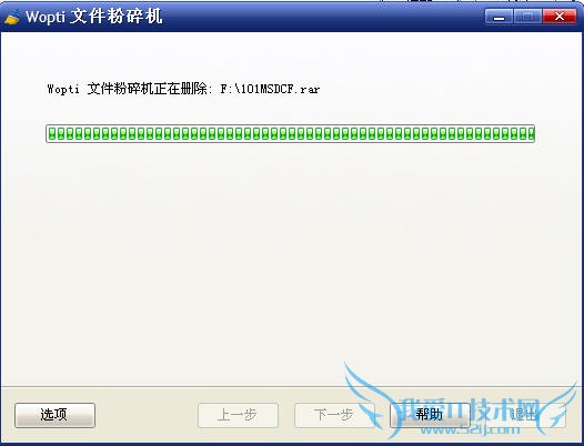 弹出对话框,询问您是否要删除增加的内容后,Wopti 文件粉碎机就开始文件粉碎工作了。