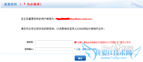 在重置密码窗口里输入两次一致的密码后点击“确定”完成密码设定,密码要求是六位的数字,大写字母,小写字母和符号四种中任意两种组合而成,如A11111