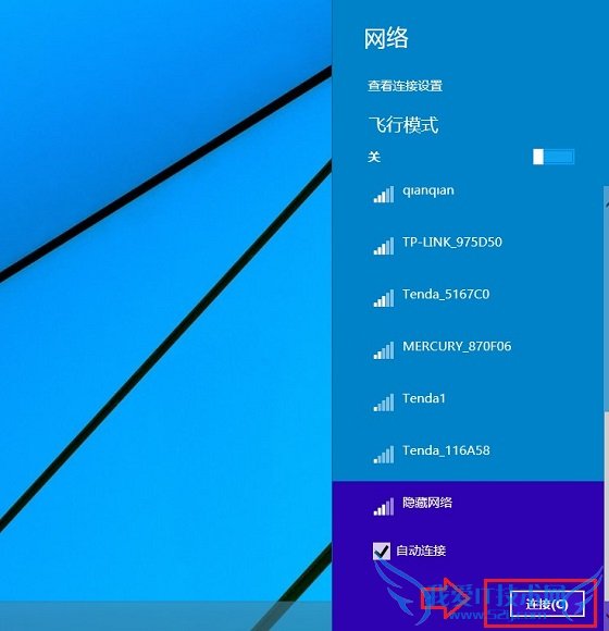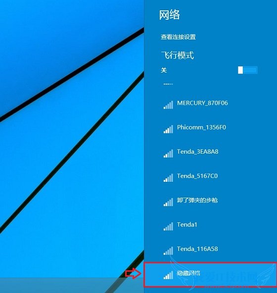 注:在Win8/Win10系统中,仅当您笔记本电脑附近搜索到可用隐藏SSID无线网络时,在无线网络列表底部才可以找到【隐藏网络】设置入口。