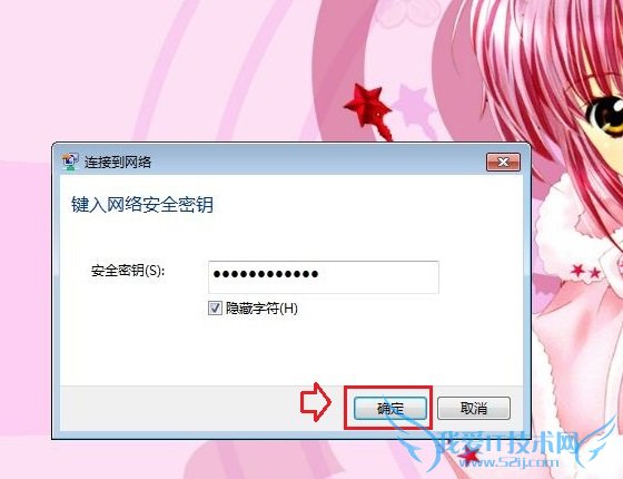 3、键入SSID名称并点击确定后,接下来需要我们输入网络安全秘钥,也就是输入Wifi密码,输入完成后,点击下方的“确定“即可,如下图所示。