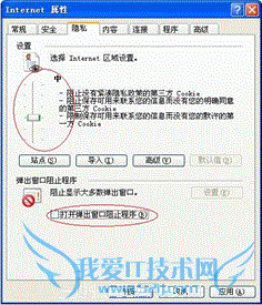 隐私:安全级别为“中”,“阻止弹出窗口”前不要勾。