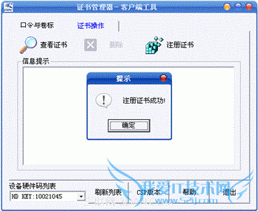 如已正确安装智能安装程序并判断K宝(USBKEY)没有硬件损坏,请尝试手工注册证书。具体流程为: 点击“程序”---“中国农业银行网上银行证书工具软件”---“中国华大”---“CSP工具”---“证书操作”---“注册证书”,如下图所示: