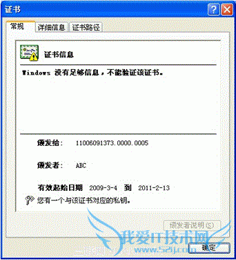 打开IE浏览器,点击【工具】---【Internet选项】---【内容】---【证书】,双击您的证书,点击【常规】 按钮,发现“证书信息”下显示:“Windows没有足够信息,不能验证该证书。”则表明您没有注册数字证书的根证书,请您注册数字证书的根证书.