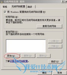 6、添加无线网络:单击“无线网络配置”中的“添加”按钮,如下图所示: