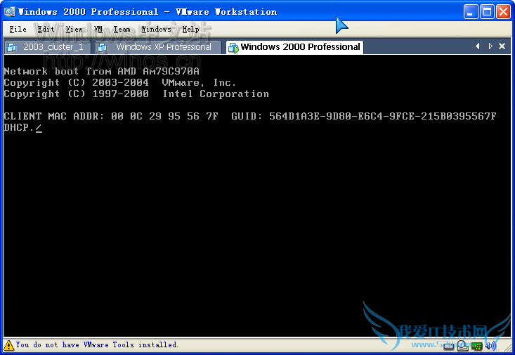 开机后就象在真正的机器中安装操作系统一样了,首先是硬件自检的过程,如图是找不到启动光盘后试图从网卡启动的截图: <-- td.attachrow { font: normal 11px Verdana, Arial, Helvetica, sans-serif; color : #000000; border-color : #000000; } td.attachheader { font: normal 11px Verdana, Arial, Helvetica, sans-serif; color : #000000; border-color : #000000; background-color: #D1D7DC; } table.attachtable { font: normal 12px Verdana, Arial, Helvetica, sans-serif; color : #000000; border-color : #000000; border-collapse : collapse; } -->