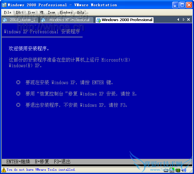 设定好虚拟机的光驱后就可以从光盘开始安装操作系统了,安装的过程和真实机器中安装过程一样,不详细说明过程了。