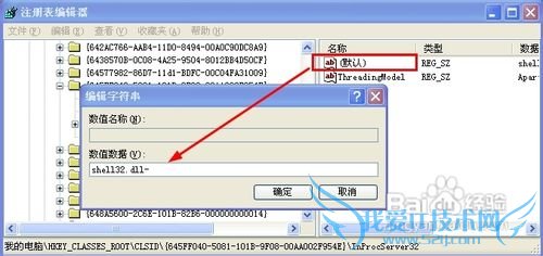 5、将“默认(字符串值)”双击打开,把数值数据改为 shell32.dll-。